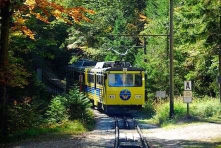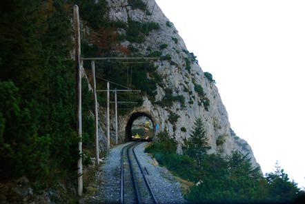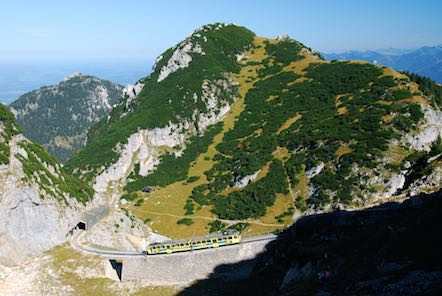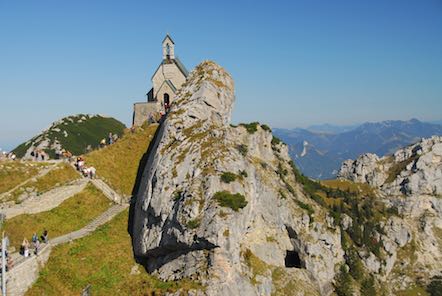 Mit der Zahnradbahn sind wir zur Bergstation gefahren. Die Wendelsteinbahn ist eine elektrisch betriebene Zahnradbahn und führt von Brannenburg im Inntal auf den Wendelstein. Die Bahn überwindet dabei einen Höhenunterschied von 1217 Metern. Sie wurde 1912 eingeweiht und steht unter Denkmalschutz. |