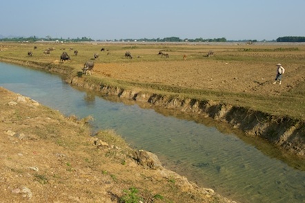 Wegen des nasskalten Regenwetters - typisch für den Winter in der Gegend um Hue - hatten wir unser Programm für heute ja abgeändert. Statt eines Stadtspaziergangs in Hue haben wir uns für eine Tagestour in die Entmilitarisierte Zone um die ehemalige Demarkationslinie zwischen Nord- und Südvietnam entschieden. Nach dem wir im Hotel gefrühstückt hatten, wurden wir vom gebuchten Fahrer pünktlich um 8 Uhr abgeholt. Dieser brachte uns Richtung Norden, nach Dong Ha, wo unsere Expertin für dieses Gebiet zustieg. Die ehemalige Geschichtslehrerin kennt sich Inder dieser Gegend hervorragend aus und konnte uns jegliche Details erzählen, über das ehemals geteilte Vietnam, über den Ho-Chi-Minh-Pfad, über den Vietnamkrieg - der hier übrigens „Amerikanischer Krieg“ genannt wird.