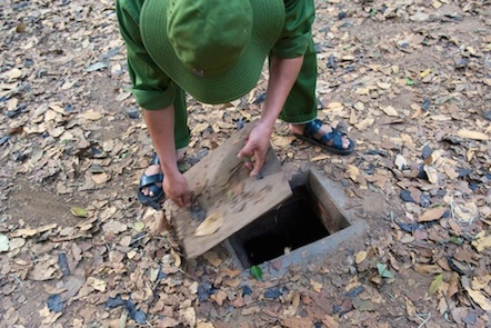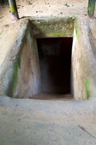 Vorletzter Punkt unserer Tour waren die Tunnel von Vinh Moc. Diese Tunnel in unmittelbarer Nähe zum Meer, entstanden, als sich die Familien in der Gegend zum Schutz vor Luftangriffen eine Höhlensystem gruben, in denen sie oft tagelang ausharren mussten. Die Tunnel hatten eine Gesamtlänge von 3 Kilometern und waren auf 3 Ebenen angeordnet. Später wurden die Tunnel vom Vietcong als Stützpunkt übernommen. Eine kleines Museum zeigt die Lebensbedingungen in den Tunneln und einige original Relikte.