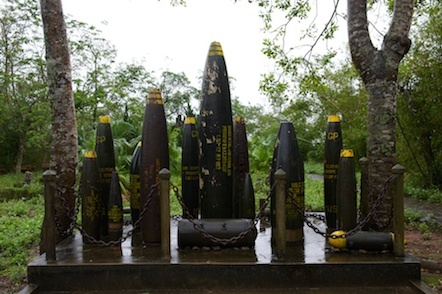 Zum Abschluss haben wir zu Fuß die Hien-Luong-Brücke überquert und das zugehörige Museum besucht. Die Brücke führt über den Ben Hai Fluß, welcher zwischen 1954 und 1975 die Grenze zwischen Nord- und Südvietnam darstellte. Die entmilitarisierte Zone umfasste ein Gebiet von 5 Kilometern auf jeder Seite. |