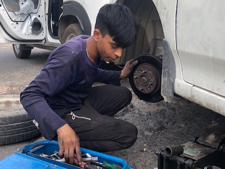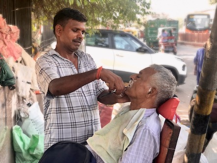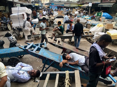 Am Nachmittag und frühen Abend haben wir zum ersten mal die U-Bahn in Delhi getestet (sehr modern, passt irgendwie so gar nicht ins Stadtbild) und sind eine ziemlich weite Strecke zu Fuß durch mehrere Teile der Stadt zu Fuß wieder zurück gelaufen und haben das geschäftige Treiben auf den diversen Märkten beobachtet. In einem der Viertel gab es zum Beispiel alles rund ums Auto: jedes erdenkliche Ersatzteil in gigantischen Mengen. Ausserdem werden die Autos auch gleich vor Ort und Stelle, am Straßenrand, buchstäblich einen halben Meter neben dem fließenden Verkher, repariert. So haben wir einen 15-Jährigen "Automechaniker" gesehen, der einen PKW aufgebockt hat, den Vorderreifen abmontiert und die Bremschscheibe samt Bremsbacken ausgetauscht hat. Das alles, während der der Fahrzeugbesitzer entspannt auf dem Rücksitz des Waagens saß und mit dem Handy gespielt hat. Für das ganze hat er umgerechnet 30-40 Euro für die Ersatzteile und 4 Euro für die Arbeitszeit bezahlt, hat er uns erzählt! |