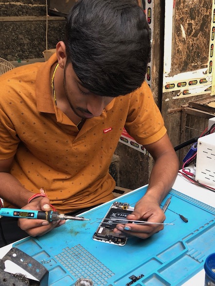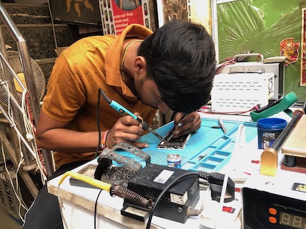 ![]() Hier wird an Mobiltelefonen gelötet, Chandni Chowk |