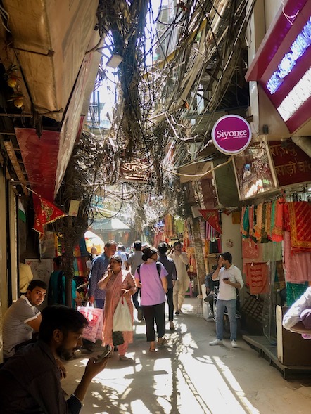 Heute morgen sind wir gegen 8 Uhr zum Connaught Place gefahren, einem zentral in Delhi gelegenen Platz, mit zahlreichen Geschäften, Restaurants, Banken etc. Nachdem aber umd diese Urzeit dort fast alles noch geschlossen hatte, sind wir zum Chandni Chowk gegangen, einem Stadtviertel mit dem ältesten und belebtesten Markt in Delhi. Das Viertel gleicht einem Labyrinth und ist eine Mischung aus Verkehrschaos, engen verwinkelten Gassen, Dreck, Lärm, unvorstellbaren mengen an Waren aller Art. Mangels Spiegel in unserem Apartment, haben wir uns kurzer Hand entschlossen, uns bei einem Barbier im Chandni Chowk rasieren zu lassen, was ein echtes Erlebnis war! Rasur inkusive Gesichtsmassage mit dubiosen Cremes. Während wir auf unseren "Behandlungsstühlen" saßen, konnten wir eine andere Kuriosität beöbachten: Am Eingangsbereich zum Saloon war ein Spiegel angebracht und es lagen eine Haarbürste und ein Kamm bereit. Diese waren für Passanten gedacht, die tatsächlich dort hinkamen, um sich die Frisur zu richten! Erschreckend und faszinierend sind auch immer die abenteuerlich verlegten Stromleitungen über den Straßen. Teilweise wirken diese sogar schon wie ein Sonnenschutz für die Fußgänger darunter. Spannend sind auch die vielen Geschäfte, die Dienstleistungen anbieten, zum Beispiel einen Bügelservice mit Kohle-Bügeleisen oder ein Reperatur-Shop für Mobiltelefone, bei dem sogar neue Elektronik-Bauteile auf den Platinen eingelötet werden. Anschließend sind wir noch einige Zeit in dem Stadtviertel umher spaziert, haben ein leckeres Mittagessen bekommen und sind dann am Abend wieder zurück in unser Apartment. |