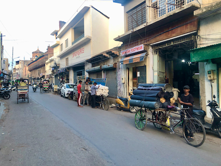Und nun, an unserem letzten Tag in Agra, haben wir weitere Gegenden der Stadt erkundet, die nicht so häufig auf der Liste der meisten Touristen hier stehen dürften. Am Morgen sind wir zu Fuß an der Ostmauer des Taj Mahals vorbei, auf ein paar bewaldete Hügel gelaufen, bis zu einer kleinen Siedlung. Dort gibt es eine Ruine einer Moshee, die gerade renoviert wird, einen Muslimischen Friedhof und eine neue Moschee, ein paar Tempel im Wald. Auf dem Rückweg sind wir noch in ein Rooftop-Restaurant, gegenüber unseren Hotels, mit einer schönen Aussicht auf das Taj. Nach der Mittagspause in unserem Zimmer, sind wir zu einer weiteren Wanderung durch den "Taj Natural Walk", einer gepflegten Parkanlage mit Pfauen, Aussichtsplattformen, Wäldern etc. Am Nachmittag sind wir dann mit dem Tuk Tuk zum Kinari Bazar von Agra gefahren und sind bis kurz nach Einbruch der Dunkelheit durch die sehr belebten Gassen rund um die Jama Masjid (Freitagsmoschee) gelaufen. Das Warenangebot reicht von Stoffen, Kleidung, Haushaltswaren, Parfüm, Gewürzen, bis Lederwaren und Schuhe. Letzteres ist eines der Hauptprodukte in Agra. Hier werden in den Hinterhöfen Schuhe massenhaft produziert. In einem Haus sieht man, wie die Teile genähnt werden, andere falten die Schuhkartons in einer düsteren Werkstatt, in einer Ecke des Raums ist eine Ziege an ein Tischbein angebunden, wieder wo anders werden dutzende Kartons mit Schuhen zu großen Gebinden zusammen geschnürt und mit dem Fahrrad abtransportiert. Andere kleben die Gummisohlen auf die Schuhe, es stinkt nach Gummi und Leim, den es um die Ecke auch in großen Blechfässern zu kaufen gibt. Manchen Läden verkaufen die Einzelteile wie Sohlen, Einlagen etc. Man kann sich gar nicht satt sehen an dem nimmer endenden Gewusel. (Dazu gibt es auch einen seperaten Film) Morgen gehts für uns dann schon wieder zur nächsten Etappe, nach Jaipur! |