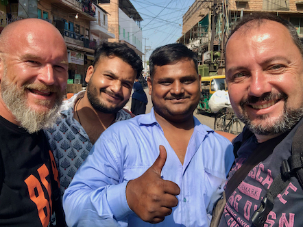 Gegen 9 Uhr haben wir heute das Hotel in Shekhawati verlassen und unsere beiden Fahrer aus Jaipur, haben uns dann nach Jodhpur gefahren, wo wir gegen halb drei angekommen sind. Unser Hotel für unseren Aufenthalt in Jodhpur liegt in Mitten der Altstadt und ist für Autos nicht zugänglich. Wir mussten also die letzten Meter zu Fuß laufen. Jodhpur wird auch die "Blaue Stadt" genannt, da die meisten der Gebäude in der Stadt blau angestrichen sind. Ursprünlich war diese Tradition nur Brahmanen (Priestern) vorbehalten. Im Laufe der Zeit aber von allen übernommen, ist die blaue Farbe heute das Markenzeichen der Stadt. Nach Jaipur ist Jodhpur die zweitgrößte Stadt im Bundesstaat Rajasthan. Obwohl die Stadt im Vergleich, mit etwa einer Million Einwohnern, verhältnismäßig klein ist, gehört sie zu den großen Sehenswürdigkeiten Indiens. Am späteren Nachmittag haben wir dann spontan noch einen Spaziergang durch die Viertel um unser Hotel unternommen. Dabei ist schon mal eines aufgefallen: Die Menschen hier sind wahnsinnig freundlich, fast jeder begrüßt uns auf der Straße, an einem Wohnhaus waren wir plötzlich von zahlreichen Kindern umringt, die uns alle neugierig ausgefragt haben. Als wir durch das "blaue" Stadtviertel kamen, haben uns die Leute aus den offenen Haustüren und von den Balkonen zugewunken und auch oft angesprochen. Die Altstadt erstreckt sich einen Berg hinauf, bis knapp unter die beeindrucken große Mehrangarh Festung. Bis zum Sonnenuntergang sind wir beim Abendessen auf der Dachterrasse eines kleinen Restaurants gesessen, von wo aus man einen schönen Panoramablick auf die Stadt und die Festung hat. Durch die engen, verwinkelten Gassen sind wir dann wieder in Richtung unseres Hotels gelaufen und dabei über den Gemüsemarkt gekommen. Dort wurden wir auf einen kleinen, schlicht aber sauber eingerichteten Gewürz- und Teeladen aufmerksam. Und eigentlich hatten wir schon lange vor, indische Gewürze für zu Hause zu kaufen. Bei M.V. Spices / Mohanlal Verhomal war nun eine gute Gelegenheit. Das Geschäft wird seit dem Tod des Gründers von seinen sieben Töchtern betrieben, weshalb sie sich auch "The Spice Girls of Rajastan" nennen. Die jüngste der Geschwister, Priya Gehani, hat sich sehr viel Zeit genommen, uns alles zu erklären und zu zeigen und wir durften auch sämtliche Gewürze und Tees probieren. Erst gegen 21 Uhr sind wir dann schließlich wieder im Hotel angekommen. |