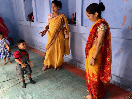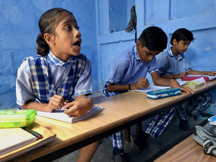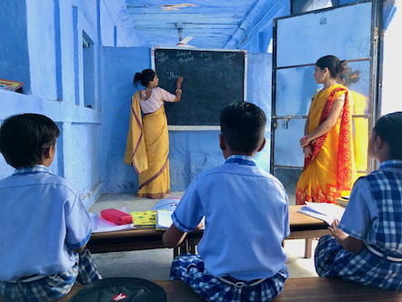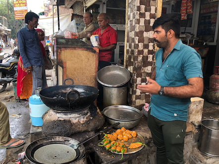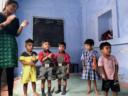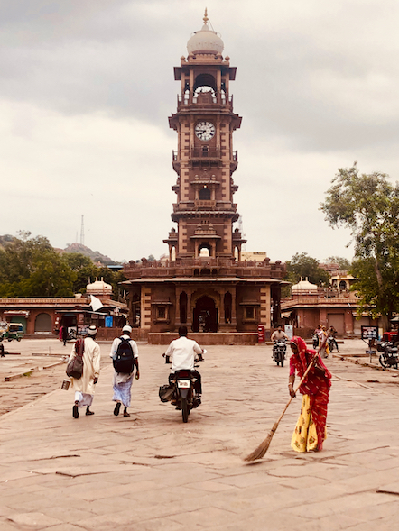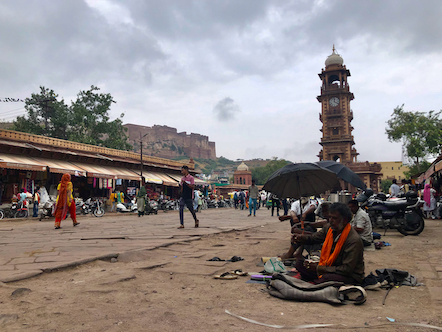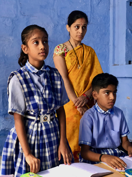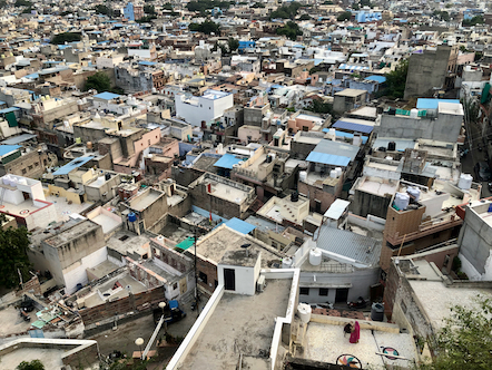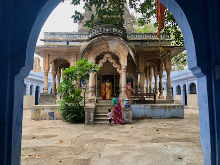 Heute sind wir wieder früh aufgestanden und waren schon vor Sonnenaufgang zu Fuß in der Stadt unterwegs. Erstaunlich ist, dass die Märkte in Jodhpur, selbst die Gemüsemärkte, vergleichsweise spät, nämlich erst ab 9 oder 10 Uhr vormittags aufmachen. Nach unserer morgentlichen Runde sind wir kurz vor Mittag nochmal ins Hotel zurück und dann am frühen Nachmittag wieder raus. Wir wollten zum nahe beim Hotel gelegenen Stufenbrunnen Toorji Ka Jhalra Bavdi gehen. Auf dem Weg dahin, kamen wir an einem großen Tor zu einen Innenhof vorbei und wären beinahe weitergelaufen, wenn uns nicht eine Frau zugewunken und uns aufgefordert hätte, hineinzugehen. Im Zentrum des Hofes, dessen Innenwände blau angemalt waren, befand sich eine Art Tempel, dessen einziger, mit drei Türen ausgestatteter Innenraum zu einem Büro umfunktioniert war. Die Frau, stellte sich uns als Heena Singh, Leiterin einer Vorschule und eines Kindergartens vor. Wir lernten auch ihre Mitarbeiterinnen kennen, sie erzählte uns viel zu diesem Projekt einer privaten Bildungseinrichtung für arme Familen und wir durften dann alle Klassenzimmer, den Versammlungsraum und den Spielraum besuchen. Obwohl diese Schule kostenlos ist, schicken nicht alle Eltern ihre Kinder regelmässig hier hin. Manchmal sind die Kinder ein oder zwei Wochen abwesend, weil sie irgendwo arbeiten und Geld verdienen müssen. Heena Sing würde sich sehr über etwas Unterstützung freuen, und wir haben ihr versprochen, dass wir Schreib- und Zeichenmaterial organisieren und dies herschicken werden. Wir wurden mit Chai und Keksen versorgt, und sind nach etwa zwei Stunden zum Stufenbrunnen weitergegangen. Danach haben wir nochmals zu Priya in den Gewürzladen gegangen, wurden auch dort nochmals mit Tee versorgt, haben auch dort weitere 2 Stunden beim Ratschen verbracht und wurden schließlich für morgen zum Biriyani eingeladen! |