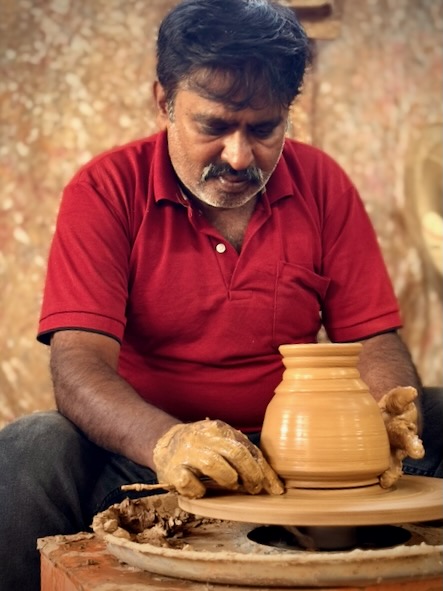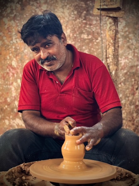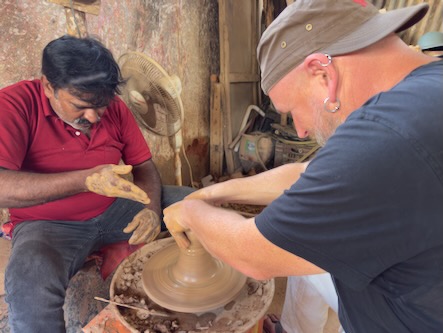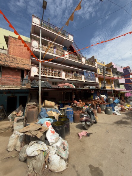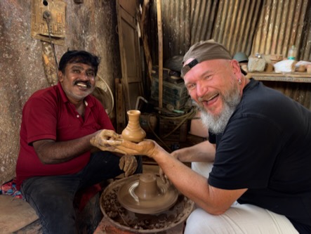 Am 4. Tag unserer Reise sind wir mit dem Tuktuk zur etwa 5 Kilometer entfernten Pottery Town gefahren. Pottery Town in Bengaluru ist ein traditionelles Handwerksviertel, das seit über hundert Jahren von der Töpfergemeinschaft der Kumbara geprägt wird. Hier entstehen auf einfache, oft noch handbetriebene Weise Tongefäße, Vasen, Diyas und Ganesha-Idole, die besonders zu Festzeiten stark nachgefragt sind. Viele Familien arbeiten seit Generationen in kleinen Werkstätten, formen den Ton auf der Scheibe, trocknen ihn in der Sonne und brennen ihn in Öfen. Doch das Viertel steht unter Druck: Billige Alternativen, steigende Kosten und städtische Bauprojekte bedrohen die Existenz der Töpfer. Trotzdem bleibt Pottery Town ein lebendiger Ort, an dem Tradition und Handwerkskunst noch spürbar sind. Kaum sind wir dort angekommen, hat uns einer der Töpfer in seine Werkstatt eingeladen und wir durften unter seiner Anleitung ein Tongefäß auf der Scheibe töpfern (siehe auch Video weiter unten). Nach dem Erlebnis bei den Töpfern und einem ausgiebig Spaziergang durch das Stadtviertel, haben wir den muslimischen Friedhof Khazi Abdul Khuddus Saheb Burial Ground besucht. Dieser wurde vor über 250 Jahren gegründet und ist einer der größten und ältesten muslimischen Grabstätten der Stadt. Anschließend sind wir zum Bengaluru Palace gefahren. Der Bengaluru Palace ist ein prächtiger Palast im Tudor-Revival-Stil, gebaut zwischen etwa 1874 und 1878. Er steht auf dem Gelände, das früher Reverend John Garrett gehörte, und ist inspiriert vom Windsor Castle in England – mit Türmen, Zinnen, gotischen Fenstern und aufwendiger Holzarbeit innen. |