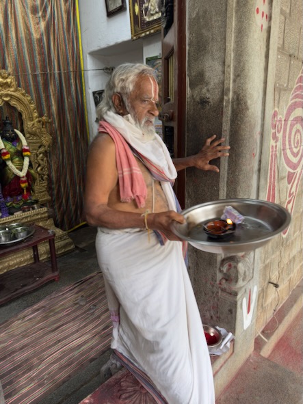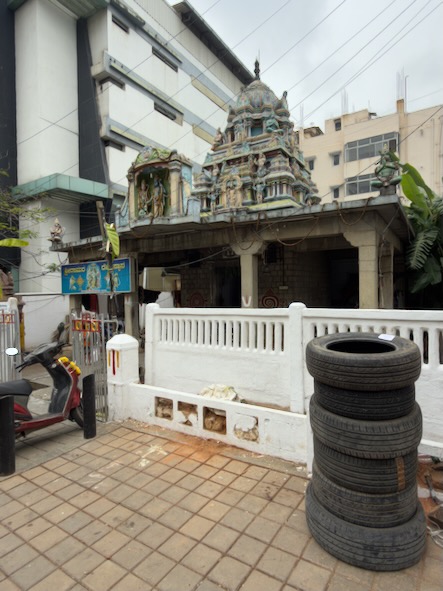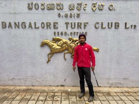 Am Vorabend hatten uns ja auf der Straße vor unserem Hotel zwei Jockeys angesprochen und eingeladen sie auf der nahegelegenen Rennbahn zu besuchen. Mit einem der beiden hatten wir uns für heute morgen um 8 Uhr verabredet und sind pünktlich am Eingangstor des 1920 gegründeten Bangalore Turf Club erschienen. Der Jockey waar schon seit 5 Uhr Morgens beim Training mit seinem Pferd und hatte um 8 Uhr schon Feierabend. Leider war es für Besucher nicht gestattet, die Rennbahn zu betreten, so dass wir darauf verzichten musste. Allerdings hat uns der Jockey nochmals auf einen Chai eingeladen und erzählt, dass er eigentlich aus dem indischen Bundesstaat Bihar kommt und Montag bis Samstag von 5 bis 8 Uhr als Jockey arbeitet und dann ab 11 Uhr als Elektriker in einer Firma tätig ist. Sonntags finden dann immer Pferderennen statt. Auf dem Weg zum Chai-Walla gab es noch - mitten auf einer belebten Straßenkreuzung - ein Video-Telefonat mit seinem Bruder, den er uns unbedingt vorstellen wollte. Da er dann ja um 11 Uhr zu seinem zweiten Job musste, haben wir uns verabschiedet. Wir sind noch ein wenig durch das Stadtviertel um unser Hotel spaziert. Dabei kamen wir zum Sri Rama Tempel, einem der kleinsten und ältesten Tempel in Bengaluru. |