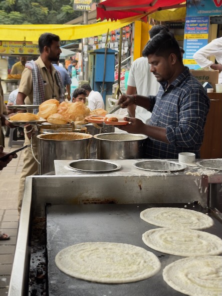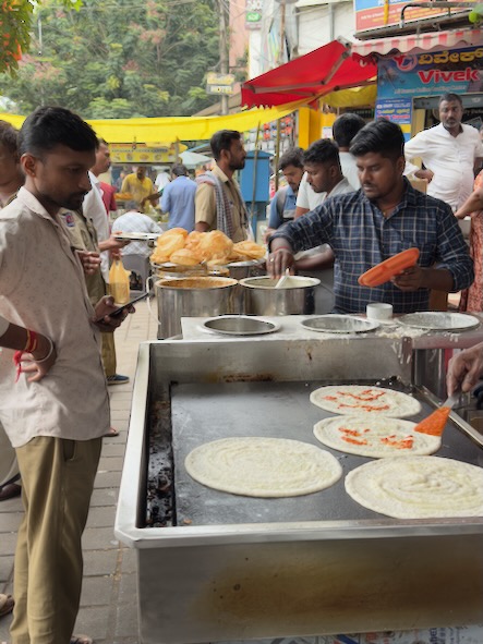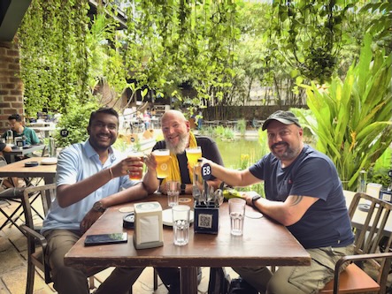 Gegen Mittag sind wir dann mit einem Uber-Taxi ca. 16 km an den Stadtrand gefahren und haben unseren Freund Prashant besucht, der dort bei Microsoft arbeitet. Wir wurden als Besucher angemeldet und durften sogar in das imposante Bürogebäude hinein und Prashant hat uns die wichtigsten Räumlichkeiten gezeigt. In der nicht minder beeindruckenden Kantine, haben wir ein Mittagessen bekommen, Snacks und Getränke. Und anschließen hat uns Prashant noch in den Biergarten einer in der Nachbarschaft angesiedelten, indischen Brauerei eingeladen. Wir sind zwar keine Bierkenner, aber die Inder können auch Bier machen und brauchen sich nicht zu verstecken. Nach dem wir am Abend dann zurück bei unserem Hotel waren, gönnten wir uns noch eine Portion gebratenen Reis an einem Straßenstand. Morgen packen wir unsere Rucksäcke wieder und fahren weiter nach Mysore. ![]() |