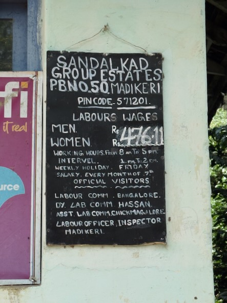 Lohntafel, Sandalkad Estates Kaffeeplantage |