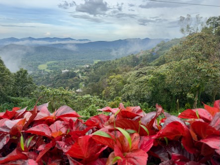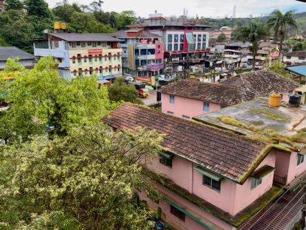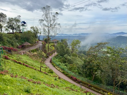 An unserem letzten Tag in Madikeri, sind wir am frühen Morgen losgezogen und sind bis zum Raja’s Seat spaziert. Dies ist eine Parkanlage auf einem der Hügel, die die Stadt umgeben und von dort hat man eine schöne Fernsicht über die üppig bewaldeten Berge in der Region Coorg. Am Morgen war es noch nebelig-feucht, mit zunehmender Sonneneinstrahlung wurde es schwül-warm. | ![]() |