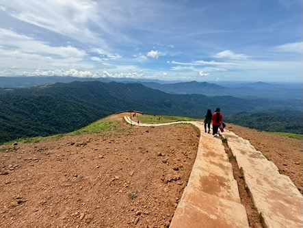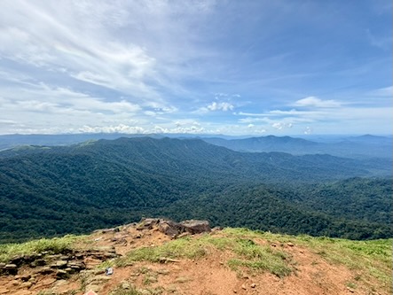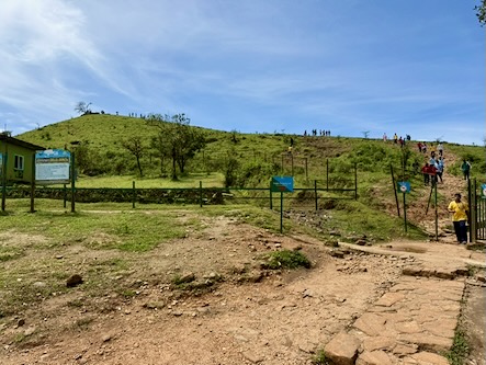 Danach hat uns denn der Tuktuk-Fahrer ein drittel der Strecke zurückgefahren, wo wir dann an einer Sammelstelle für Offroad-Fahrzeuge ausgestiegen und in einen solches umgestiegen sind. Und zwar für eine sehr abenteuerliche, extrem holprige Fahrt bis zum gut 20 Kilometer entfernten Mandalpatti-Aussichtspunktes. Die Straße ist nur für Allradfahrzeuge zugelassen und es wird dringend davon abgeraten, es mit einem privaten Fahrzeug zu versuchen. Als Straße kann man es größtenteils eigentlich gar nicht bezeichnen und es wird den betagten Mahindra-Geländewägen alles abverlangt. Auch wenn die Fahrt Spaß macht, man ist auch wider froh, wenn man aussteigen darf: Das Festklammern am Sitz und den Haltestangen ist anstrengend. Nach eineinhalb Stunden haben wir den Aussichtspunkt erreicht und mussten nur noch eine Anhöhe hinaufsteigen, wurden dort oben aber mit einer unvergleichlichen Aussicht belohnt. | ![]() |