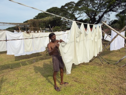 Schon kurz nach 8 Uhr waren wir heute im Stadtteil Pandikudi und haben dort öffentliche Wäscherei Dhobi Khana besucht.