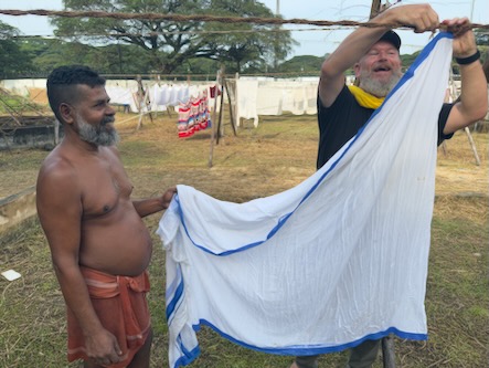 Dhobi Khana in Fort Kochi ist ein historischer, gemeinschaftlicher Waschplatz, der von Nachkommen der Vannan-Gemeinschaft aus Tamil Nadu betrieben wird, die bereits im 17. Jahrhundert von den Niederländern hier her geholt wurden, um deren Militäruniformen zu waschen. Der Ort ist ein lebendiges Zeugnis dieser Kolonialgeschichte und nutzt weiterhin traditionelle Waschmethoden. Der Betrieb steht vor Herausforderungen durch moderne Technologie, aber die Gemeinschaft versucht, traditionelle und moderne Methoden zu kombinieren, um zu überleben und die Arbeitsplätze zu erhalten. Die Wäsche wird traditionell von Hand gewaschen: sie wird in Wasser mit Bleichmittel und Waschmittel eingeweicht, dann auf einem Waschstein geschlagen und anschließend mit aus gekochtem Reis gewonnenem Stärkestoff behandelt. Der Arbeitstag beginnt früh mit dem Einweichen und Waschen, gefolgt vom Aufhängen der Wäsche zum Trocknen. Abends wird sie gebügelt (oft mit Holzkohlebügeleisen) und gefaltet. Die Arbeiter in der Wäscherei waren sehr aufgeschlossen und haben uns alle ihre Arbeiten ausführlich gezeigt . Es war ein sehr informativer Besuch dort.