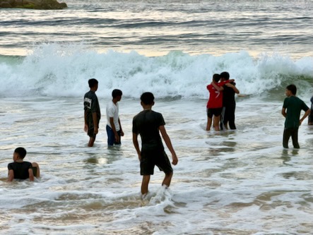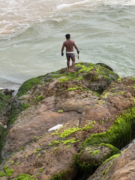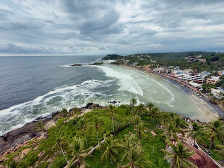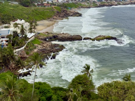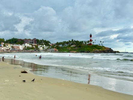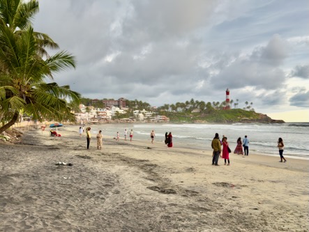 So, und nun aber zum heutigen Tag: Gleich nach dem Frühstück sind wir losgezogen, um eine Wäscherei zu finden, um unsere T-Shirts waschen zu lassen. Ein wenig mussten wir zwar suchen und warten, da die Einträge und Öffnungszeiten bei Google Maps nicht stimmten, aber schließlich fanden wir eine Wäscherei und wir können unsere gewaschenen Sachen dann am Sonntag abholen. Auf dem Weg zur Wäscherei sind wir bei einer Feuerwache von Thiruvananthapuram vorbeigekommen. Da einige Feuerwehrmänner gerade vor dem Tor standen, haben wir sie gefragt, ob wir ein Foto mit ihnen machen dürfen - und in wenigen Sekunden, war die gesamte Besetzung der Feuerwache im Hof, um mit uns einen Schnappschuss zu machen! Danach sind wir dann zum Kanakakunnu Palast gelaufen, heute ein Veranstaltungsort für Events, Kunstausstellungen etc. mit einem sehr gepflegten Park. Von dort sind wir dann zunächst zurück ins Hotel, sind ein paar Runden im Pool geschwommen und haben dann auf unseren Fahrer Shojan David gewartet, den wir gestern beim Spaziergang getroffen hatten. Ihn hatten wir gebeten, uns zu den Stränden, etwas südlich von Thiruvananthapuram zu fahren, da sich dort ein paar Sehenswürdigkeiten befinden, die wir besuchen wollte. | ![]() |