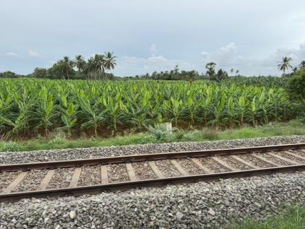Für die 300 Kilometer lange Strecke benötigte der Zug etwas mehr als 5 Stunden. Die Fahrt ging zunächst Richtung Süden, nach Nagercoil, also fast bist zur südlichsten Spitze Indiens und dem südlichsten Punkt unserer Reise. Dann macht die Strecke eine Kurve und führt nach Norden, bis nach Madurai.