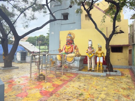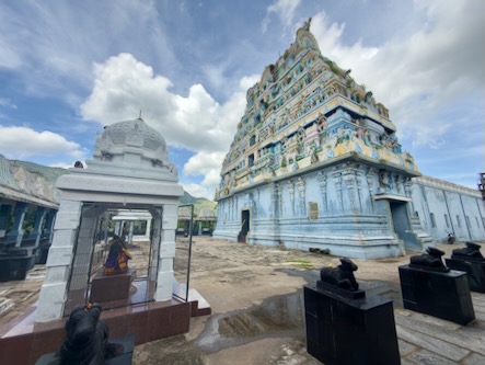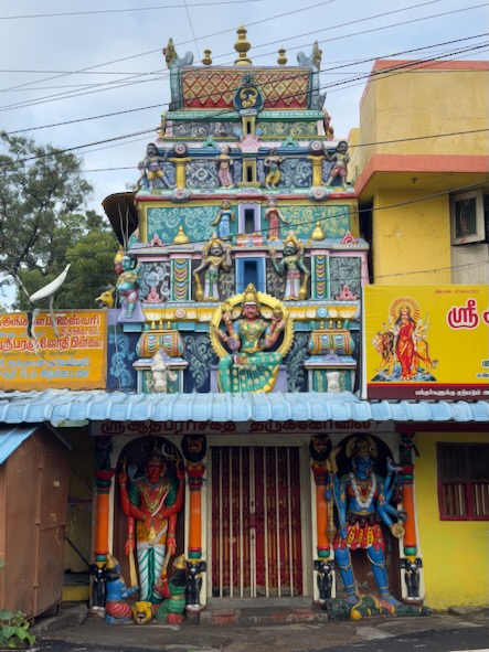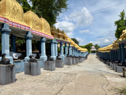 Nach einem kurze Stopp im Hotel sind wir mit einem Tuktuk ins ca. 13 Kilometer südlich gelegene Ariyanoor gefahren und haben dort den „1008 Shiva und Rajarajeshwari Tempel“ gefahren. Dort gibt es mehrere große Haupttempel und 1008 kleinere Tempel mit Lingams und Nandis. Die Tempel liegen in einer parkartigen Anlage an einem Hügel mit viel Grün und Wegen zum Spazieren. | ![]() |