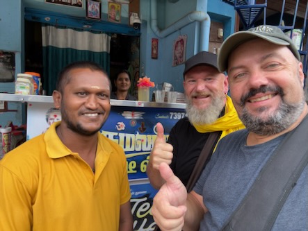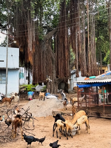 Wieder unten angekommen sind wir wieder einfach durch die Straßen und Gassen der Stadt spaziert. Dabei sind wir unter anderem auch an einer Schreibmaschinen-Schule vorbeigekommen. Auf mehrere primitiven Holztischen standen altmodische mechanische Schreibmaschinen, sowohl mit unseren lateinischen Typen, als auch mit tamilischen Schriftzeichen.