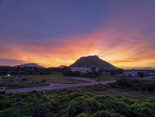 Wir sind heute von einem unglaublichen Sonnenaufgang geweckt worden und hatten von unserem Hotelzimmer aus, einen tollen Ausblick auf das Krishnagiri Fort.
