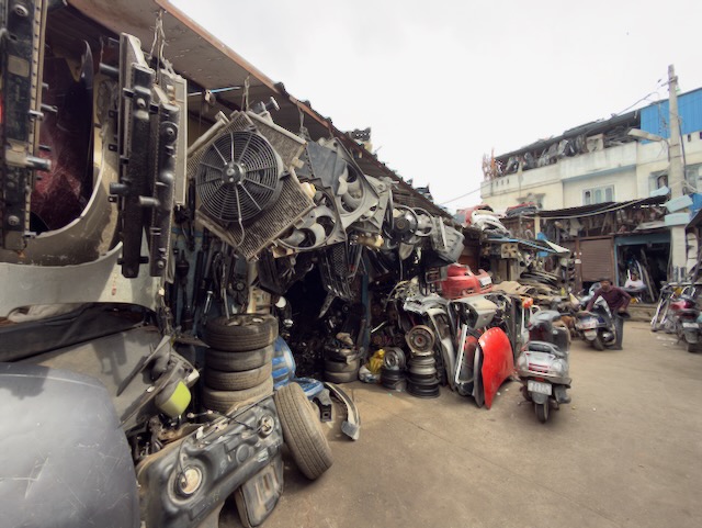Von daher gibt es heute leider nur einen sehr kurzen Bericht. In den verbleibenden Tagen, werden wir noch ein paar uns unbekannte Ecken der Stadt zu erkunden versuchen. Den Anfang machte heute das Stadtviertel rum um den historischen Russel Market. In den vielen engen Gassen haben sich unzählige Händler für gebrauchte Auto- und Motorrad-Ersatzteile angesiedelt. Fahrzeuge werden hier ausgeschlachtet, die Teile gereinigt, repariert, sortiert. Die Teile stapeln sich oft bis unters Dach - und zwar bis in den dritten oder vierten Stock der Häuser!