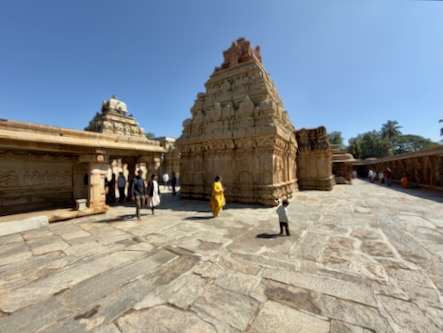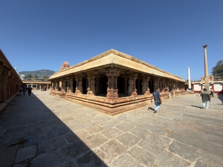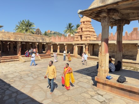 Kannada Rajyotsava ist in Karnataka ein staatlicher Feiertag und wird von Kannada-Sprechern weltweit gefeiert. Zu den Feierlichkeiten gehören die Bekanntgabe und Verleihung der Rajyotsava Awards durch die Regierung von Karnataka, das Hissen der Karnataka-Flagge mit einer Ansprache des Ministerpräsidenten und des Gouverneurs von Karnataka sowie Gemeindefeste, Konzerte, Buchvorstellungen in Kannada etc. Entsprechend war auch der Tumult auf den Straßen rund um unser Hotel. Wir haben daher einen Ausflug ca. eineinhalb Stunden nördlich von Bengaluru, ins Dorf Nandi gemacht und haben dort den Sri Bhoga Nandishwara Tempel besucht. Es handelt sich dabei um den ältesten noch existierenden Tempel im Nolambavadi-Stil in Karnataka. Die beeindruckende Tempelanlage ist rund tausend Jahre alt.