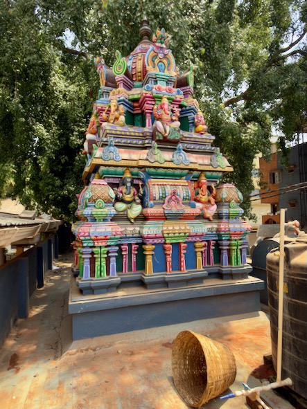 Wenig später erreichten wir schließlich den Sri Pralaya Kalada Virabadhra Swami Temple, der auf einer kleinen Anhöhe liegt. Von dort oben hatte man eine schöne Aussicht auf die umliegenden Häuser und das geschäftige Leben der Stadt. Der Tempel selbst strahlte eine ruhige, fast zeitlose Atmosphäre aus – ein Ort, an dem man für einen Moment dem Trubel entkommen kann.
