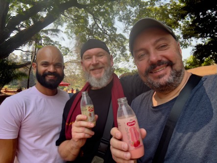 Der Tag begann entspannt mit einem Frühstück im Hotel, bevor wir uns mit der Metro auf den Weg zum Lalbagh Botanical Garden machten. Schon beim Betreten des weitläufigen Geländes spürten wir, dass dieser Ort mehr ist als nur ein Park – er ist eine grüne Oase mitten in der Stadt. Wir schlenderten über verschlungene Wege, vorbei an riesigen alten Bäumen, blühenden Beeten und ruhigen Teichen. Besonders faszinierend war eine kleine Ecke des Gartens, in der mehrere Bildhauer arbeiteten. Mit großer Geduld und beeindruckender Präzision schufen sie Skulpturen aus Holz und Stein, die später ihren Platz im Garten finden sollen. Wir blieben eine ganze Weile stehen, beobachteten ihre Arbeit und kamen schließlich auch ins Gespräch mit ihnen. Es war spannend zu hören, wie viel Zeit, Erfahrung und Leidenschaft in jede einzelne Figur fließt. Den ganzen Vormittag verbrachten wir damit, den botanischen Garten zu erkunden. Erst gegen Mittag zog es uns weiter in Richtung Marktviertel. In der lebhaften Old Market Street legten wir einen kulinarischen Zwischenstopp bei der traditionsreichen VB Bakery ein. Dort probierten wir mehrere gefüllte Brote – jedes ein wenig anders, aber alle unglaublich lecker. Zwischen Gewürzen, frischem Gebäck und dem geschäftigen Treiben der Straße fühlte sich dieser Ort wie ein kleines kulinarisches Abenteuer an. Am Nachmittag fuhren wir weiter in den Stadtteil New Guddadahalli. Dort beschlossen wir einfach loszulaufen und uns treiben zu lassen. Mehrere Kilometer lang erkundeten wir Straßen, die eine faszinierende Mischung aus Wohnviertel, kleinen Geschäften und traditionellen Werkstätten bilden. Überall gab es etwas zu entdecken – Handwerker bei der Arbeit, kleine Läden mit allem Möglichen und immer wieder neugierige Blicke. Die Menschen dort begegneten uns mit einer Offenheit und Freundlichkeit, die uns wirklich berührte. Oft konnten wir kaum zwei Schritte gehen, ohne dass uns jemand ansprach, uns die Hand schütteln wollte oder ein gemeinsames Foto machen wollte. Diese spontanen Begegnungen machten den Spaziergang zu etwas ganz Besonderem. Zum Abschluss des Tages landeten wir schließlich in dem gleichen kleinen Lassi-Shop, den wir bereits im letzten Jahr entdeckt hatten. Ein Ort, der fast schon ein bisschen vertraut wirkt. Dort gönnten wir uns noch ein herrlich erfrischendes Mango Lassi. Als wir später zurück ins Hotel kamen, zeigte der Schrittzähler fast 11 Kilometer an. |