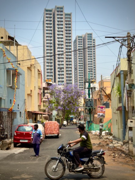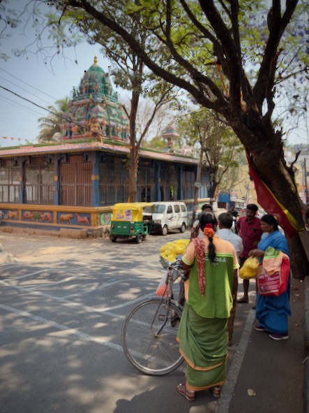 Und heute nach dem Frühstück im Hotel stiegen wir wieder in eine Autorikscha und ließen uns in einen der westlicheren Stadtteile von Bangalore bringen. Von dort aus machten wir uns zu Fuß auf den Weg zurück in Richtung Zentrum – wie so oft ohne festen Plan, dafür mit offenen Augen und viel Neugier.