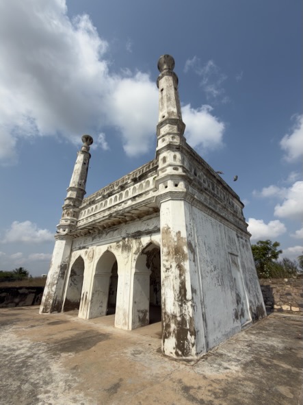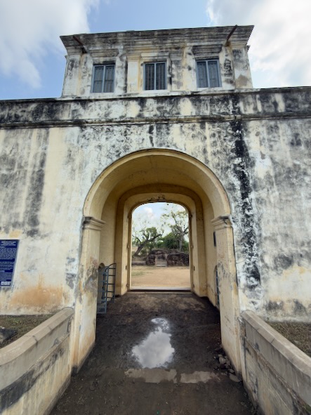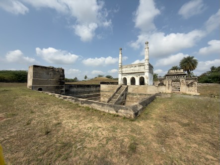 Anschließend setzten wir unsere Reise nach Arcot fort. Dort tauchten wir ein Stück weit in die Geschichte der Region ein und besichtigten gleich zwei bedeutende Bauwerke: das historische Delhi Gate sowie die Überreste des Arcot Forts, die von vergangenen Zeiten erzählen. Arcot ist eine eher ruhige, aber historisch äußerst bedeutende Stadt im Bundesstaat Tamil Nadu. Sie liegt am Ufer des Palar-Flusses und war im 18. Jahrhundert ein strategisch wichtiger Ort – insbesondere während der Machtkämpfe zwischen lokalen Herrschern, den Moguln und europäischen Kolonialmächten wie den Briten und Franzosen. Arcot war einst die Hauptstadt der sogenannten Karnatischen Nawabs und entwickelte sich dadurch zu einem politischen und militärischen Zentrum Südindiens. Ein besonders markantes Bauwerk ist das Delhi Gate. Dieses massive Tor aus dem 18. Jahrhundert ist eines der wenigen noch gut erhaltenen Überbleibsel der alten Befestigungsanlagen von Arcot. Die Überreste des Arcot Fort erzählen von einer Zeit voller Konflikte und politischer Intrigen. Besonders bekannt ist das Fort durch die Belagerung von Arcot im Jahr 1751, ein Teil der Karnatischen Kriege zwischen Briten und Franzosen. Der junge britische Offizier Robert Clive verteidigte das Fort mit einer vergleichsweise kleinen Truppe erfolgreich gegen eine deutlich größere Streitmacht. Dieser Sieg war ein Wendepunkt und trug maßgeblich zum wachsenden Einfluss der Briten in Indien bei. Heute sind vom Fort selbst nur noch Ruinen und Erdwerke erhalten, doch mit etwas Vorstellungskraft kann man sich gut ausmalen, wie bedeutend dieser Ort einst war.