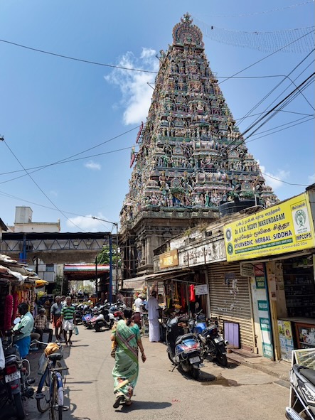 Der heutige Tempel stammt vermutlich aus dem 16. Jahrhundert, wobei das ursprüngliche Bauwerk einst näher am Meer gestanden haben soll. Besonders spannend war es, die Vorbereitungen für das Arupathimoovar Festival zu beobachten – ein großes Fest zu Ehren von 63 Heiligen, das die Straßen rund um den Tempel normalerweise in ein Meer aus Farben und Prozessionen verwandelt. Auch wenn wir es zeitlich verpassen werden, konnten wir die besondere Atmosphäre bereits erahnen.