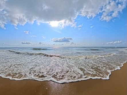 Am dreizehnten Tag unserer Reise ließen wir den Trubel der Stadt zunächst hinter uns und machten uns am Morgen mit einer Autorikscha auf den Weg in einen der südlicheren Teil evon Chennai – nach Besant Nagar. Unser erstes Ziel war der Elliot’s Beach, der um diese frühe Stunde noch fast menschenleer war. Die kleinen Verkaufsbuden entlang der Promenade hatten ihre Läden noch geschlossen, und nur vereinzelt begegneten wir ein paar Spaziergängern. Die ruhige Stimmung, das sanfte Rauschen der Wellen und die frische Morgenluft gaben dem Ort eine fast meditative Atmosphäre.