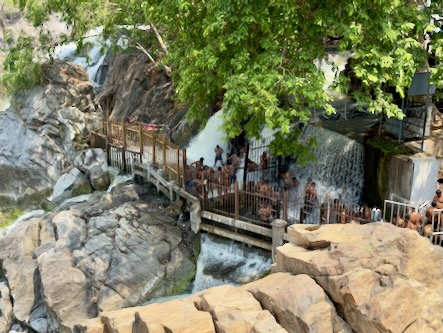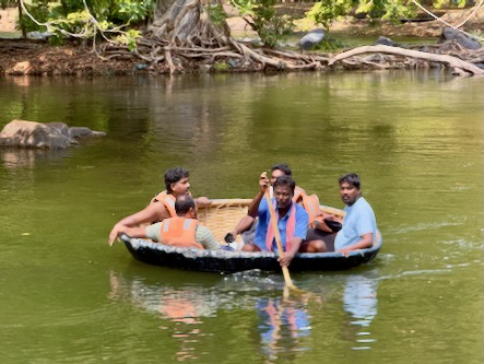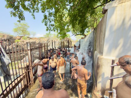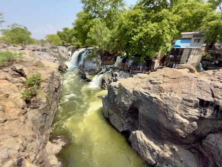 Die rund 200 Kilometer hätten wir normalerweise in etwa drei bis dreieinhalb Stunden zurückgelegt. Doch wie so oft auf dieser Reise war der Weg das eigentliche Ziel. Wir haben uns Zeit gelassen, immer wieder angehalten und schließlich sogar einen kleinen Umweg zu den beeindruckenden Hogenakkal-Wasserfällen gemacht. Oft als das „Niagara Indiens“ bezeichnet, stürzt hier der Kaveri-Fluss in zahlreichen Kaskaden über zerklüftete Felsen in die Tiefe. Das Tosen des Wassers, die runden Coracle-Boote auf dem Fluss und die fast mystische Atmosphäre machten diesen Ort zu einem ganz besonderen Zwischenstopp.