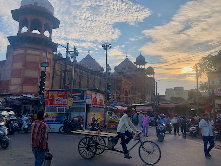 Bevor wir berichten, was wir am 7 Tag unserer Reise erlebt haben, gibt es noch einen kleinen Nachtrag zum gestrigen Abend: Nach dem Veröffentlichen unsres Tagebucheintrags, sind wir noch in das Dorf Mohammadpur, wenige Kilometer vor Agra gefahren, ums und dort den Bazar anzusehen. Man muss vorausschicken, dass Agra (1,7 Millionen Einwohner) mit dem Taj Mahal zwar ein riesiger Touristenmagnet ist, dies beschränkt sich jedoch auf einen sehr kleinen und überschaubaren Teil der Stadt, also den Bereich um das Taj Mahal selbst, Hotels und Souveniergeschäfte drum herum. Da die Meisten Touristen nur einen oder höchstens 2 Tage hier übernacht bleiben - viele machen sogar nur einen Tagesausflug von Delhi mit dem Expresszug hier her - bleibt nur Zeit für das Taj Mahal. Und in die Randgebiete um die Stadt verirrt sich wohl so gut wie kein Ausländer. Das erklärt auch, was wir gestern in Mohammadpur erlebt haben. Als wir auf dem vorhin schon erwähnten Bazar waren, uns einen frisch gepressten Zuckerrohrsaft gönnten und wir auf unsren Fahrer warteten, den wir per Handy-App bestellt hatten, bemerkten wir, dass eine handvoll neugieriger Leute um uns rum standen und uns anstarrten, dann 10, 20 und schließlich wahrscheinlich sogar über 30 Personen, die uns interessiert beobachteten. Plötzlich fing einer an Fragen zu stellen: woher wir kämen, was wir hier machen. Alle wollten dann etwas von uns wissen, fanden das alles ganz witzi, dass zwei Bleichgesichter, mitten in der Nacht noch dazu, ihren Bazar besuchten. Handyfotos mussten nun gemacht werden, wir wurden gefilmt, einer wollte uns sogar zu sich nach Hause einladen, damit wir seine Familie kennenlernen. Ein anderer mit besseren Englischkenntnissen, entschuldigte sich für seine Mitbewohner, wir sollten aber keine Angst haben. Haben wir auch nicht, sagten wir, es sind ja alle sehr freundlich, lustig, freuten sich über unseren Besuch. Und wir waren so in die Gespräche verwickelt, dass wir beinahe unseren Tuk Tuk-Fahrer übersehen hätten, der schließlich angekommen war und uns in unsere Touristen-Hotel-Welt zurück brachte. |