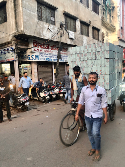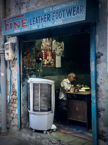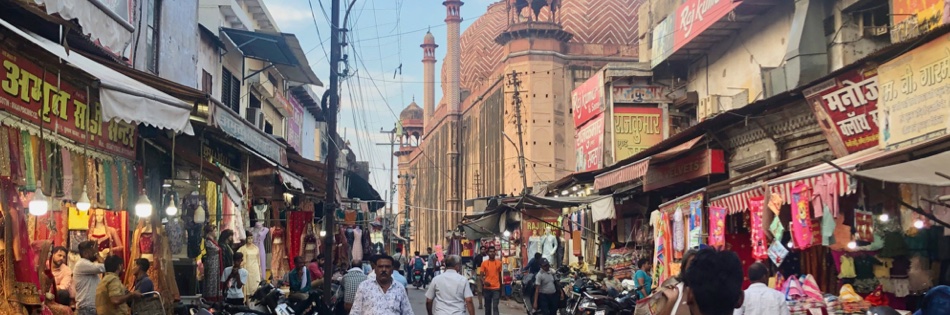 Und nun, an unserem letzten Tag in Agra, haben wir weitere Gegenden der Stadt erkundet, die nicht so häufig auf der Liste der meisten Touristen hier stehen dürften. Am Morgen sind wir zu Fuß an der Ostmauer des Taj Mahals vorbei, auf ein paar bewaldete Hügel gelaufen, bis zu einer kleinen Siedlung. Dort gibt es eine Ruine einer Moshee, die gerade renoviert wird, einen Muslimischen Friedhof und eine neue Moschee, ein paar Tempel im Wald. Auf dem Rückweg sind wir noch in ein Rooftop-Restaurant, gegenüber unseren Hotels, mit einer schönen Aussicht auf das Taj. Nach der Mittagspause in unserem Zimmer, sind wir zu einer weiteren Wanderung durch den "Taj Natural Walk", einer gepflegten Parkanlage mit Pfauen, Aussichtsplattformen, Wäldern etc. Am Nachmittag sind wir dann mit dem Tuk Tuk zum Kinari Bazar von Agra gefahren und sind bis kurz nach Einbruch der Dunkelheit durch die sehr belebten Gassen rund um die Jama Masjid (Freitagsmoschee) gelaufen. Das Warenangebot reicht von Stoffen, Kleidung, Haushaltswaren, Parfüm, Gewürzen, bis Lederwaren und Schuhe. Letzteres ist eines der Hauptprodukte in Agra. Hier werden in den Hinterhöfen Schuhe massenhaft produziert. In einem Haus sieht man, wie die Teile genähnt werden, andere falten die Schuhkartons in einer düsteren Werkstatt, in einer Ecke des Raums ist eine Ziege an ein Tischbein angebunden, wieder wo anders werden dutzende Kartons mit Schuhen zu großen Gebinden zusammen geschnürt und mit dem Fahrrad abtransportiert. Andere kleben die Gummisohlen auf die Schuhe, es stinkt nach Gummi und Leim, den es um die Ecke auch in großen Blechfässern zu kaufen gibt. Manchen Läden verkaufen die Einzelteile wie Sohlen, Einlagen etc. Man kann sich gar nicht satt sehen an dem nimmer endenden Gewusel. (Dazu gibt es auch einen seperaten Film) Morgen gehts für uns dann schon wieder zur nächsten Etappe, nach Jaipur! |