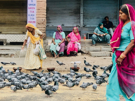 Heute sind wir wieder früh aufgestanden und waren schon vor Sonnenaufgang zu Fuß in der Stadt unterwegs. Erstaunlich ist, dass die Märkte in Jodhpur, selbst die Gemüsemärkte, vergleichsweise spät, nämlich erst ab 9 oder 10 Uhr vormittags aufmachen. Nach unserer morgentlichen Runde sind wir kurz vor Mittag nochmal ins Hotel zurück und dann am frühen Nachmittag wieder raus. Wir wollten zum nahe beim Hotel gelegenen Stufenbrunnen Toorji Ka Jhalra Bavdi gehen. Auf dem Weg dahin, kamen wir an einem großen Tor zu einen Innenhof vorbei und wären beinahe weitergelaufen, wenn uns nicht eine Frau zugewunken und uns aufgefordert hätte, hineinzugehen. Im Zentrum des Hofes, dessen Innenwände blau angemalt waren, befand sich eine Art Tempel, dessen einziger, mit drei Türen ausgestatteter Innenraum zu einem Büro umfunktioniert war. Die Frau, stellte sich uns als Heena Singh, Leiterin einer Vorschule und eines Kindergartens vor. Wir lernten auch ihre Mitarbeiterinnen kennen, sie erzählte uns viel zu diesem Projekt einer privaten Bildungseinrichtung für arme Familen und wir durften dann alle Klassenzimmer, den Versammlungsraum und den Spielraum besuchen. Obwohl diese Schule kostenlos ist, schicken nicht alle Eltern ihre Kinder regelmässig hier hin. Manchmal sind die Kinder ein oder zwei Wochen abwesend, weil sie irgendwo arbeiten und Geld verdienen müssen. Heena Sing würde sich sehr über etwas Unterstützung freuen, und wir haben ihr versprochen, dass wir Schreib- und Zeichenmaterial organisieren und dies herschicken werden. Wir wurden mit Chai und Keksen versorgt, und sind nach etwa zwei Stunden zum Stufenbrunnen weitergegangen. Danach haben wir nochmals zu Priya in den Gewürzladen gegangen, wurden auch dort nochmals mit Tee versorgt, haben auch dort weitere 2 Stunden beim Ratschen verbracht und wurden schließlich für morgen zum Biriyani eingeladen! |