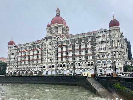Unser erster ganzer Tag in Mumbai hat regnerisch angefangen; die Monsunzeit ist noch nicht ganz vorrüber. Die Inder hier freuen sich grundsätzlich darüber, denn zur eigentlichen Regenzeit hat es einen Monat lang überhaupt nicht geregnet. Daher ist der Regen willkommen und man macht das Beste daraus. Das Gute ist, dass es nur immer nur wenige Stunden regnet und immer noch warm bleibt. Es kann aber dann auch schnell schwülwarm werden. Wir sind also am Morgen mit einem Vorortzug von der uns am nächsten gelegenen Station Bandra nach Churchgate, an der Südspitze der Stadt gefahren. Zu Fuß sind wir dann zum "Gateway of India" gegangen, einem Monument in Form eines Torbogens, das 1924 fertiggestellt wurde. Es ist eines der bekanntesten Wahrzeichen des Landes und zur Erinnerung an den Besuch von König Georg V. (1865–1936) und seiner Frau Maria von Teck(1867–1953) errichtet. Das Königspaar befand sich auf dem Weg zum Delhi Durbar und betrat im damaligen Bombay im Jahr 1911 erstmals indischen Boden. Es war der erste Besuch eines regierenden britischen Monarchen in Indien überhaupt. Kaum an dem Monument angekommen, wurden wir von unzählichen indischen Touristen angesprochen, ob sie Fotos von und mit uns machen dürfen... das ging dann übrigens den Rest des Tage so weiter! Wir sind es ja inzwischen gewohnt. Gleich gegenüber des Torbogens befindet sich das Taj Mahal Palace Hotel. Das Luxus-Hotel wurde 1903 eröffnet, hat 560 Zimmer, 46 Suiten und beschäftigt 1600 Mitarbeiter. Traurige Berühmtheit erlangte das Hotel 2008 als von einer pakistanischen Terrorgruppe Anschläge verübt wurden, bei denen 167 Menschen starben. US-Präsident Barack Obama war 2010 erster ausländischer Staatsgast, der nach dem Terroranschlag in dem Hotel abstieg. Nächste Station war dann der Strand von Girgaon Chowpatty, wo wir auch einen kleinen Snack zu Mittag gegessen haben. Hier wird dann in einigen Tagen (leider genau am Tag unserer Abreise) der Höhepunkt des diesjährigen Ganescha-Festes stattfinden, wenn eine riesige Ganescha-Figur, begleitet von zehntausenden Menschen, ins Meer getragen wird. Man lässt sich auch von der starken Verschmutzung und Keimbelastung des Wassers nicht von dieser Tradition abbringen. Etwas weiter nördlich haben wir dann die Haji Ali Dargah Mosche besucht. Diese Mosche befindet sich auf einer Landzunge und ist nur bei Ebbe erreichbar, wenn der Steeg nicht überflutet ist. Wegen des Regens war der Zugang trotztem recht nass und schlammig. Wir sind aber immerhin rechtzeitig zum Freitagsgebet gekommen und durften dem Ganzen beiwohnen und durften sogar fotografieren, was unüblich ist. Am Nachmittag sind wir dann wieder mit dem Zug nach Hausegefahren und zum Glück haben wir in unserem Apartment eine Waschmaschine für unsere durchnässte und verschmutzte Wäsche! |
