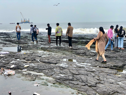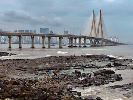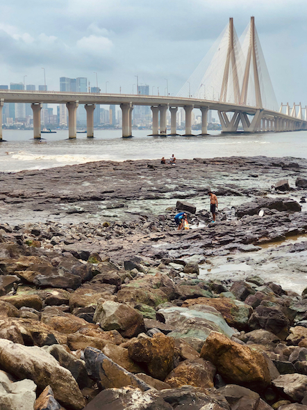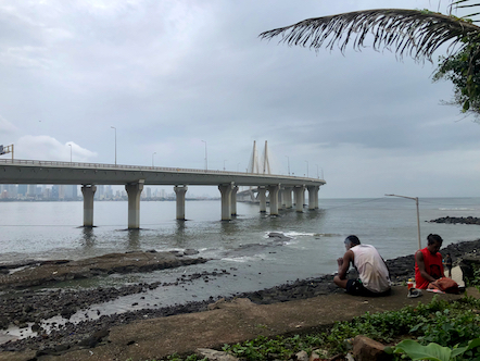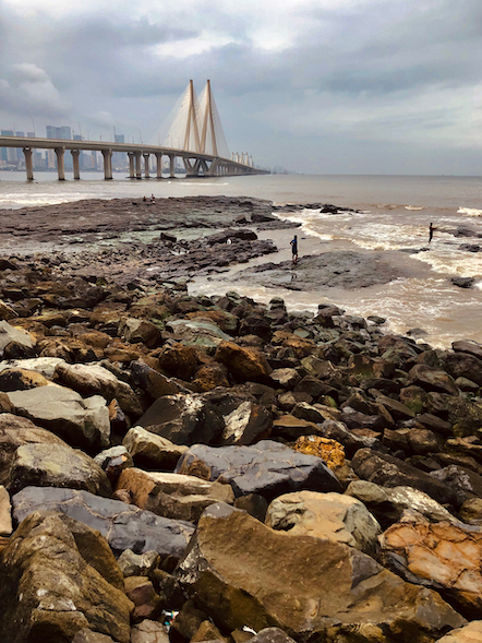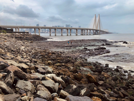 Für heute hatten wir uns kein spezielles Programm vorgenommen, sondern wir wollten nur das Stadtviertel Mumbais, in dem wir wohnen - Bandra West - etwas genauer erkunden. Zunächst sind wir durch kleinere Gassen gelaufen, dann wurden die Straßen und Häuser größer, bis wir schließlich an der Strandpromenande "Bandstand" angekommen waren. Dort stehen viele Hotels und Apartment-Hochhäuser teils direkt mit Meerblick. Von verschiedenen Punkten am Meer hat man eine schöne Aussicht auf das südlich gelegene Stadtzentrum und die Rajiv Gandhi Sealink-Brücke. Nach einer kurzen Mittagspause in unserem Apartment sind wir dann am Nachmittag nochmal durch unser Viertel spaziert, diesmal aber in nördlicher Richtung. |