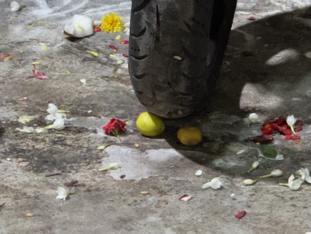In einem kleinen Tempel sahen wir, wie ein Motorrad gesegnet wurde und wenig später wurden wir zufällig am Rande einer vielbefahrenen Straße Zeugen einer großen Segnungszeremonie eines Lastwagens. Als ich filmen wollte wurde ich von der Familie des LKW-Besitzer förmlich dazu ermuntert alles genau mit der Kamera festzuhalten. Es wurden Früchte geopfert, Rituale mit Feuer durchgeführt und es gab Feuerwerk und Böller. Als wir dann wieder gehen wollten, sind uns zwei Männer der Familie nachgelaufen und haben uns eine große schwere Schachtel, gefüllt mit vielen typischen Süßigkeiten geschenkt! Ach ja: Als Abendessen hatten wir "Plain Dosa" und "Onion Dosa" in einem kleinen Restaurant. Sehr Lecker! ![]() |