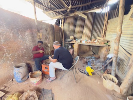Kaum sind wir dort angekommen, hat uns einer der Töpfer in seine Werkstatt eingeladen und wir durften unter seiner Anleitung ein Tongefäß auf der Scheibe töpfern (siehe auch Video weiter unten).