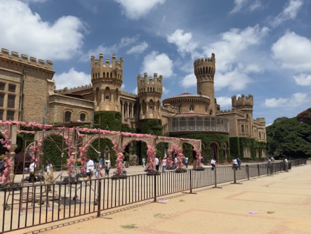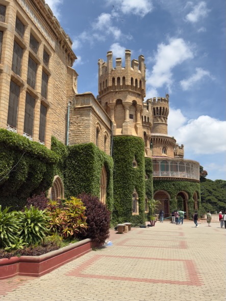 Anschließend sind wir zum Bengaluru Palace gefahren. Der Bengaluru Palace ist ein prächtiger Palast im Tudor-Revival-Stil, gebaut zwischen etwa 1874 und 1878. Er steht auf dem Gelände, das früher Reverend John Garrett gehörte, und ist inspiriert vom Windsor Castle in England – mit Türmen, Zinnen, gotischen Fenstern und aufwendiger Holzarbeit innen. Heute gehört der Palast der Wadiyar Dynastie und ist offenes Museum, Veranstaltungsort und beliebtes Touristenziel, dessen Säle, Gärten und Architektur, Besucher in die königliche Vergangenheit von Mysore entführen. |