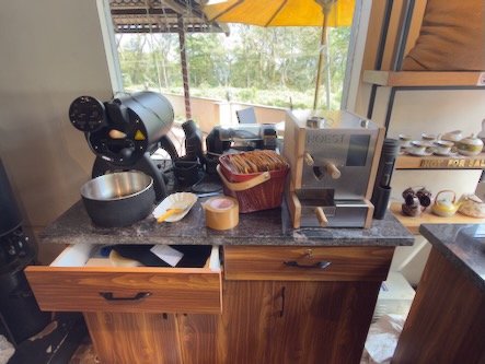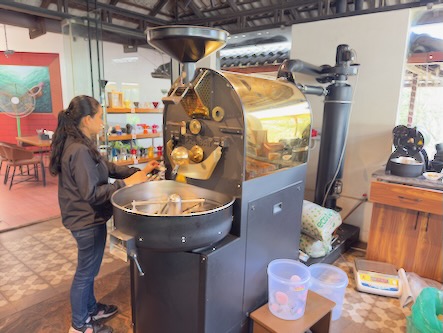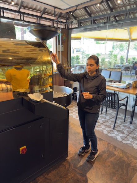 Unser zweiter Tag in Madikeri stand ganz im Zeichen des Kaffees. Allerdings waren wir heute schon sehr früh auf, so dass die meisten Geschäfte noch geschlossen hatten, als wir schon auf der Straße waren. Wir nutzten also die Zeit mit einem ausgedehnten Spaziergang durch die Stadt und besichtigten ein paar interessante Plätze direkt am Ort. Erste Station war das Madikeri Fort, oder auch Mercara Fort genannt, das man einfach so betreten und einmal um die Befestigungsmauer herumlaufen kann. Das Fort stammt aus der zweiten Hälfte des 17ten Jahrhunderts, wurde später mehrfach umgebaut und erweitert. In der Kirche befindet sich ein Museum, das allerdings am Morgen noch geschlossen war. Als nächstes besuchten wir den Sri Omkareshwara Temple. Der Tempel wurde im 18. Jahrhundert von König Lingarajendra II. erbaut. Der Legende nach tötete der König einen Brahmanen, um seine politischen Ambitionen zu verwirklichen. Dies hatte jedoch negative Auswirkungen auf ihn: Der König wurde von Albträumen heimgesucht und suchte den Rat einiger weiser Männer, um davon befreit zu werden. Ihrem Rat zufolge erbaute der König einen Tempel für Gott Shiva. Dies beendete die Albträume des Königs. Danach haben wir uns mit einem Tuktuk zum etwas 7 km ausserhalb gelegen „Big Cup Café“ bringen lassen, einem sehr modernen Kaffeehaus mit integrierter Kaffeerösterei auf höchstem Niveau. Wir hatten ein sehr ausführliches Gespräch mit der jungen Röstmeisterin und ihren Kollegen, es wurde uns alles in dem Betrieb gezeigt und wir durften beim Rösten zuschauen. Das Frühstück und der Kaffee waren ausserdem auch noch hervorragend. |