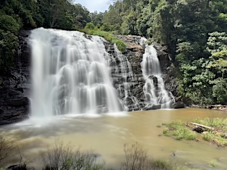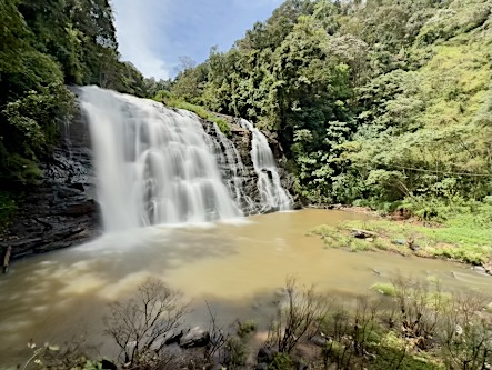 Nach dem Besuch des Parks in der Stadt, sind wir mit einer Autorikscha zu dem etwa 8 Kilometer ausserhalb gelegenen Abbi Wasserfall gefahren. Nach einem kurzen Fußweg durch den Wald, erreicht man eine Besucherplattform, von der aus man den Wasserfall gut beobachten kann. Gespeist wird er aus dem Wasser des Kaveri Flusses. | ![]() |