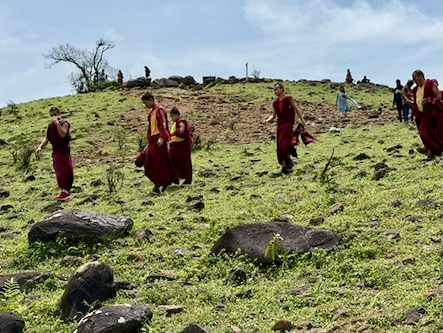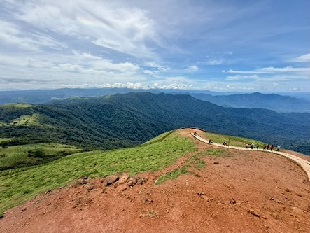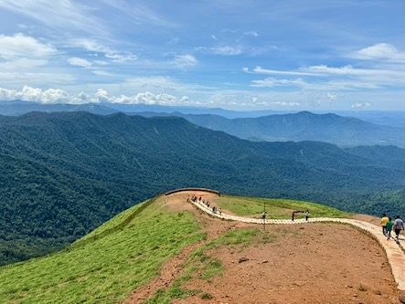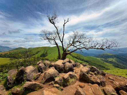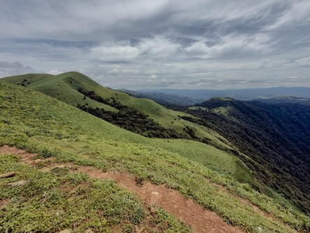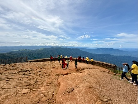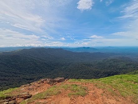 Danach hat uns denn der Tuktuk-Fahrer ein drittel der Strecke zurückgefahren, wo wir dann an einer Sammelstelle für Offroad-Fahrzeuge ausgestiegen und in einen solches umgestiegen sind. Und zwar für eine sehr abenteuerliche, extrem holprige Fahrt bis zum gut 20 Kilometer entfernten Mandalpatti-Aussichtspunktes. Die Straße ist nur für Allradfahrzeuge zugelassen und es wird dringend davon abgeraten, es mit einem privaten Fahrzeug zu versuchen. Als Straße kann man es größtenteils eigentlich gar nicht bezeichnen und es wird den betagten Mahindra-Geländewägen alles abverlangt. Auch wenn die Fahrt Spaß macht, man ist auch wider froh, wenn man aussteigen darf: Das Festklammern am Sitz und den Haltestangen ist anstrengend. Nach eineinhalb Stunden haben wir den Aussichtspunkt erreicht und mussten nur noch eine Anhöhe hinaufsteigen, wurden dort oben aber mit einer unvergleichlichen Aussicht belohnt. | ![]() |