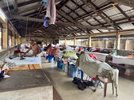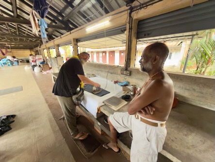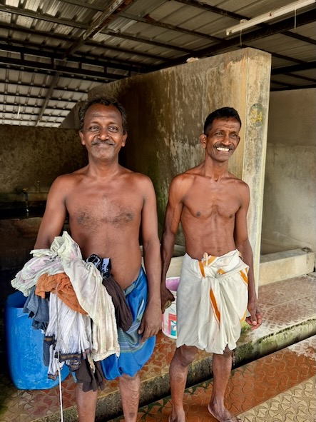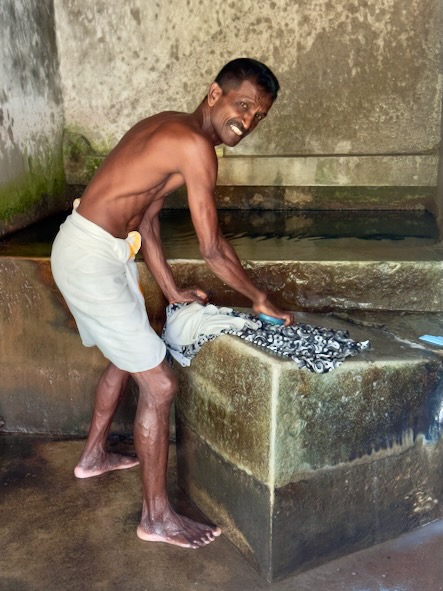 Dhobi Khana in Fort Kochi ist ein historischer, gemeinschaftlicher Waschplatz, der von Nachkommen der Vannan-Gemeinschaft aus Tamil Nadu betrieben wird, die bereits im 17. Jahrhundert von den Niederländern hier her geholt wurden, um deren Militäruniformen zu waschen. Der Ort ist ein lebendiges Zeugnis dieser Kolonialgeschichte und nutzt weiterhin traditionelle Waschmethoden. Der Betrieb steht vor Herausforderungen durch moderne Technologie, aber die Gemeinschaft versucht, traditionelle und moderne Methoden zu kombinieren, um zu überleben und die Arbeitsplätze zu erhalten. Die Wäsche wird traditionell von Hand gewaschen: sie wird in Wasser mit Bleichmittel und Waschmittel eingeweicht, dann auf einem Waschstein geschlagen und anschließend mit aus gekochtem Reis gewonnenem Stärkestoff behandelt. Der Arbeitstag beginnt früh mit dem Einweichen und Waschen, gefolgt vom Aufhängen der Wäsche zum Trocknen. Abends wird sie gebügelt (oft mit Holzkohlebügeleisen) und gefaltet. Die Arbeiter in der Wäscherei waren sehr aufgeschlossen und haben uns alle ihre Arbeiten ausführlich gezeigt . Es war ein sehr informativer Besuch dort.