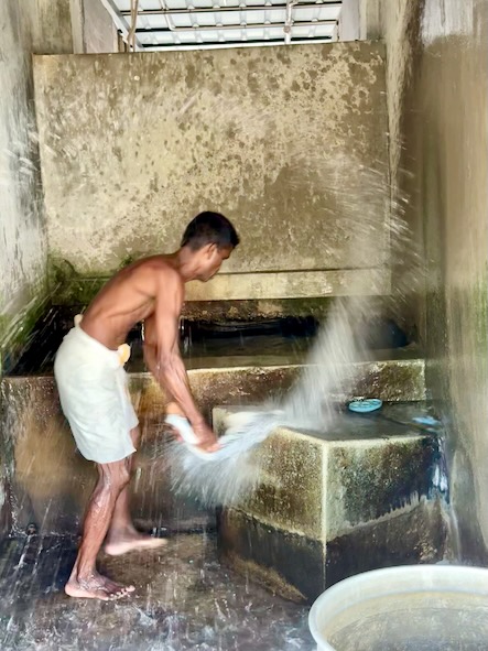 Schon kurz nach 8 Uhr waren wir heute im Stadtteil Pandikudi und haben dort öffentliche Wäscherei Dhobi Khana besucht.