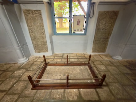Vasco da Gama, war ein portugiesischer Seefahrer und Entdecker des Seewegs um das Kap der Guten Hoffnung nach Indien. Er starb in Kochi auf seiner dritten Indienreise im Jahre 1524 und wurde in der Kirche begraben. 14 Jahre nach seinem Tode wurden seine sterblichen Überreste wieder exhumiert und nach Lissabon überführt. Noch heute ist seine Begräbnisstätte in der Kirche ausgewiesen.