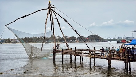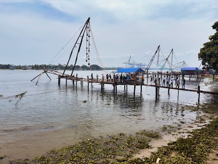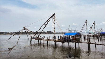 Unweit von der Franziskanerkirche findet man die sogenannten Chinesischen Fischernetze am Strand von Kochi. Große mechanische Vorrichtungen aus hölzernen Stangen halten horizontale Netze von 20 Metern Durchmesser oder mehr, jede Anlage ist mindestens 10 Meter hoch. Schwere Steine sind an Seilen am anderen Ende als Gegengewichte aufgehängt. Jede Anlage wird von einem Team von bis zu sechs Fischern betrieben.