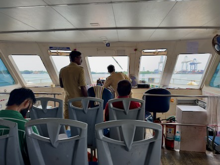 Von den Fischernetzen sind wir zur Fähranlegestelle gegangen und sind mit einer Fähre nach Enrankuleum, quasi der Schwesterstadt Kochis gefahren. Auf einem kleinen Spaziergang durch die quirlige Großstadt haben wir den kleinen Subrahmanyeswara Swamy Tempel besucht. Danach ging’s mit einem Tuktuk zurück zu unserem Hotel. Es gibt jetzt übrigens auch das versprochene Video zu unserem gestrigen Bootsausflug zu sehen! Dazu einfach einen Tag zurück blättern und ganz nach unten scrollen.  |