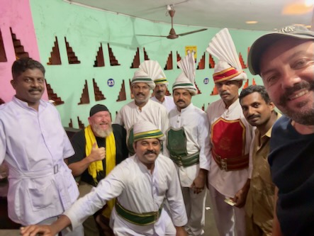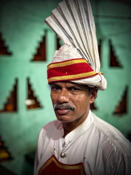 Bevor es mit dem Bericht zu unserem Heutigen Tag weitergeht, noch ein Nachtrag zum gestrigen Abend: Bei der Fahrt zurück ins Hotel haben wir ein merkwürdig gestaltetes Gebäude in Form eines spiralförmigen Turms aus roten Ziegelsteinen gesehen. Wir haben gelesen, dass sich darin das Indian Coffee House befindet und wollten am Abend unbedingt noch dort hin. Und dies hat sich wirklich gelohnt! Wir haben noch nie so ein verrücktes Gebäude bzw. Kaffeehaus gesehen. Der wie ein Schneckenhaus aufgebaute Gang windet sich über mehrere Etagen, am äusseren Rand befinden sich die ebenfalls mit gemauerten Sitzbänke und Tische, im inneren Kern des Gebäudes befinden sich auf mehreren Ebenen Waschräume und Toiletten. Die Küche befindet sich etwa auf der halben Höhe und ist in einem Seitenturm untergebracht. Die Kellner haben ganz ähnliche Uniformen an, wie die, die wir in Kolkata schon einmal in einem Kaffeehaus gesehen hatten. Als ich unserem Kellner ein Foto zeigte, das ich von seinem „Kollegen“ in Kolkata gemacht hatte, wollte er unbedingt auch ein Foto von sich haben und wir musste es mit unserem kleinen Fotodrucker, den wir ja immer dabei haben, ausdrucken. Er bedanket sich und ging erst einmal weg. Wenig später kam er mit einem zweiten Kollegen zurück. Auch der wollte ein Porträt haben… irgendwann hat es sich dann im ganzen Haus herum gesprochen und plötzlich stand das gesamte Personal um uns und alle wollten fotografiert werden und Ausdrucke davon haben…