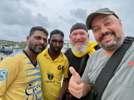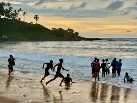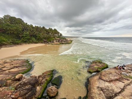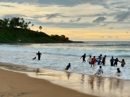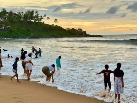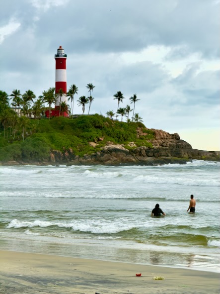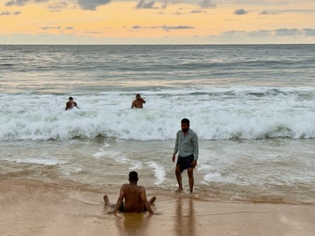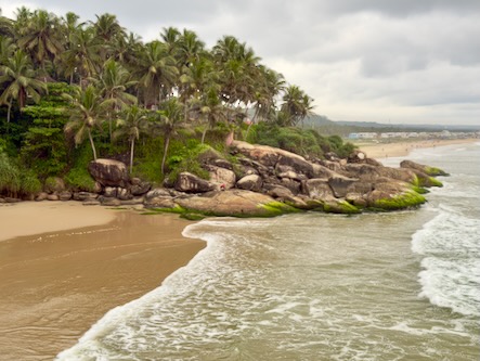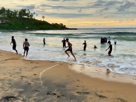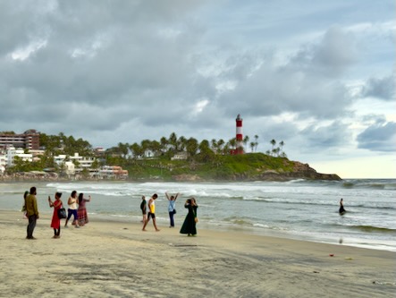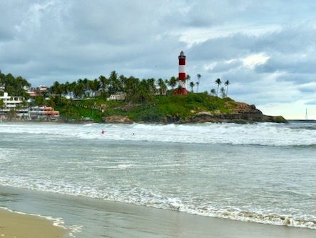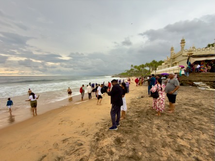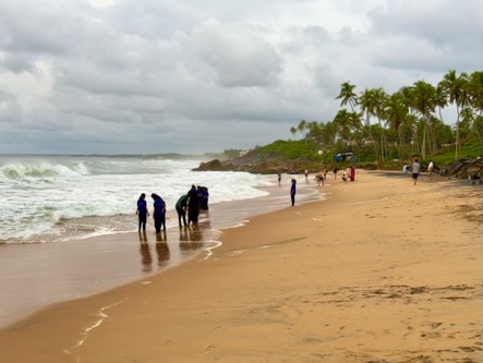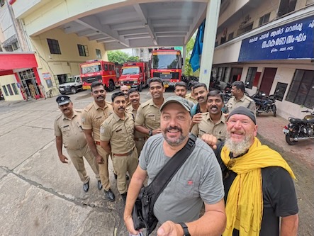 So, und nun aber zum heutigen Tag: Gleich nach dem Frühstück sind wir losgezogen, um eine Wäscherei zu finden, um unsere T-Shirts waschen zu lassen. Ein wenig mussten wir zwar suchen und warten, da die Einträge und Öffnungszeiten bei Google Maps nicht stimmten, aber schließlich fanden wir eine Wäscherei und wir können unsere gewaschenen Sachen dann am Sonntag abholen. Auf dem Weg zur Wäscherei sind wir bei einer Feuerwache von Thiruvananthapuram vorbeigekommen. Da einige Feuerwehrmänner gerade vor dem Tor standen, haben wir sie gefragt, ob wir ein Foto mit ihnen machen dürfen - und in wenigen Sekunden, war die gesamte Besetzung der Feuerwache im Hof, um mit uns einen Schnappschuss zu machen! Danach sind wir dann zum Kanakakunnu Palast gelaufen, heute ein Veranstaltungsort für Events, Kunstausstellungen etc. mit einem sehr gepflegten Park. Von dort sind wir dann zunächst zurück ins Hotel, sind ein paar Runden im Pool geschwommen und haben dann auf unseren Fahrer Shojan David gewartet, den wir gestern beim Spaziergang getroffen hatten. Ihn hatten wir gebeten, uns zu den Stränden, etwas südlich von Thiruvananthapuram zu fahren, da sich dort ein paar Sehenswürdigkeiten befinden, die wir besuchen wollte. | ![]() |